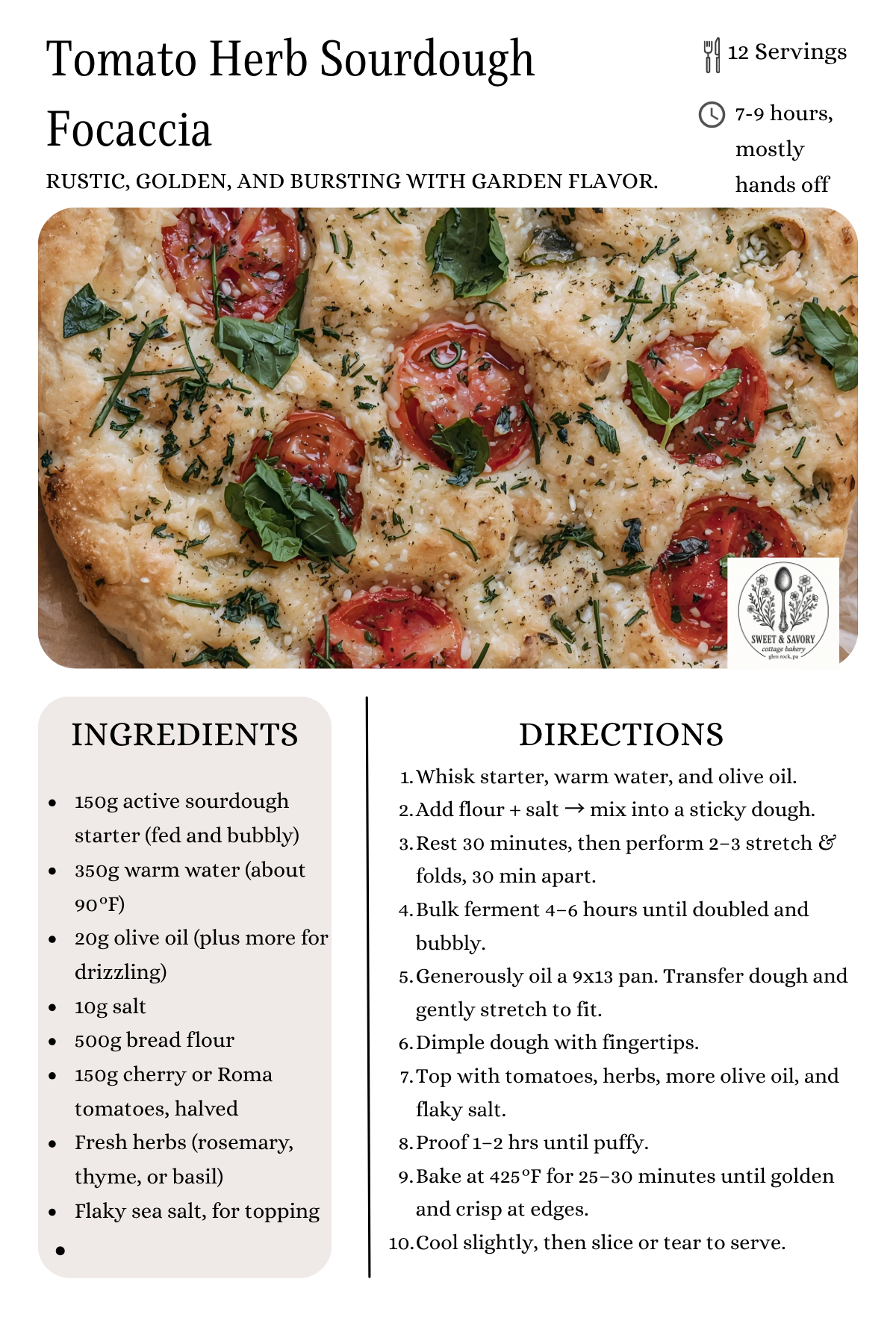 Bread doesn’t have to be perfect to be wonderful. This focaccia, with its uneven bubbles, juicy tomatoes, and crisp edges, is proof of that. If you bake it, I’d love to see it — snap a photo and tag me @sweetandsavoryhomestead so we can share the joy.