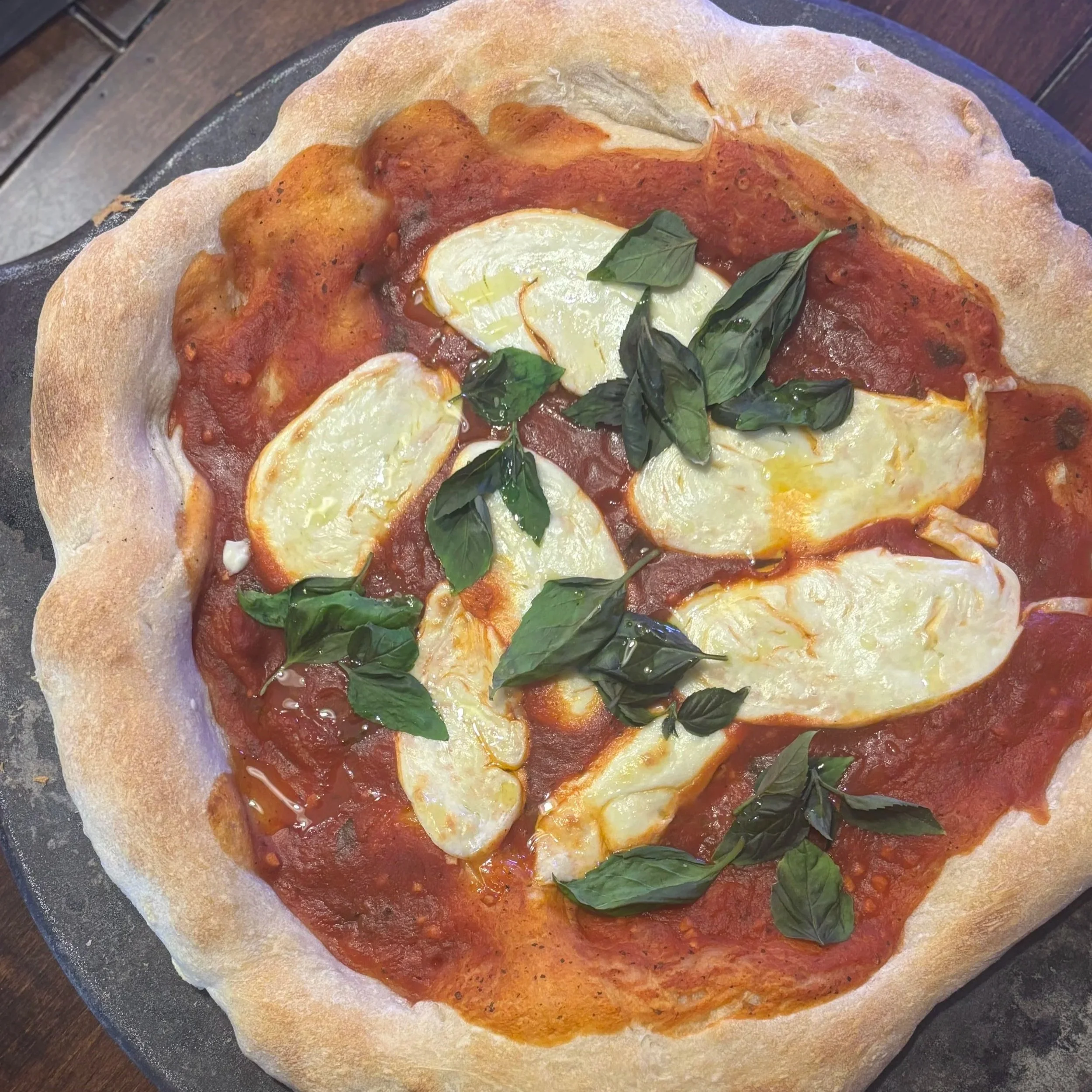 Golden, bubbly, and perfectly rustic — this pizza brings everyone to the table, whether you use sourdough or a quick-rise dough.